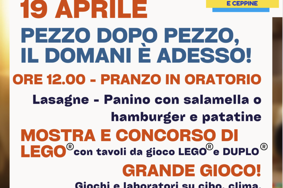 DOMENICA 19/04/2026 ore 14.00 Mostra, concorso e laboratorio di Lego A cura di: Oratorio San Luigi Tradate Oratorio San Luigi – Tradate