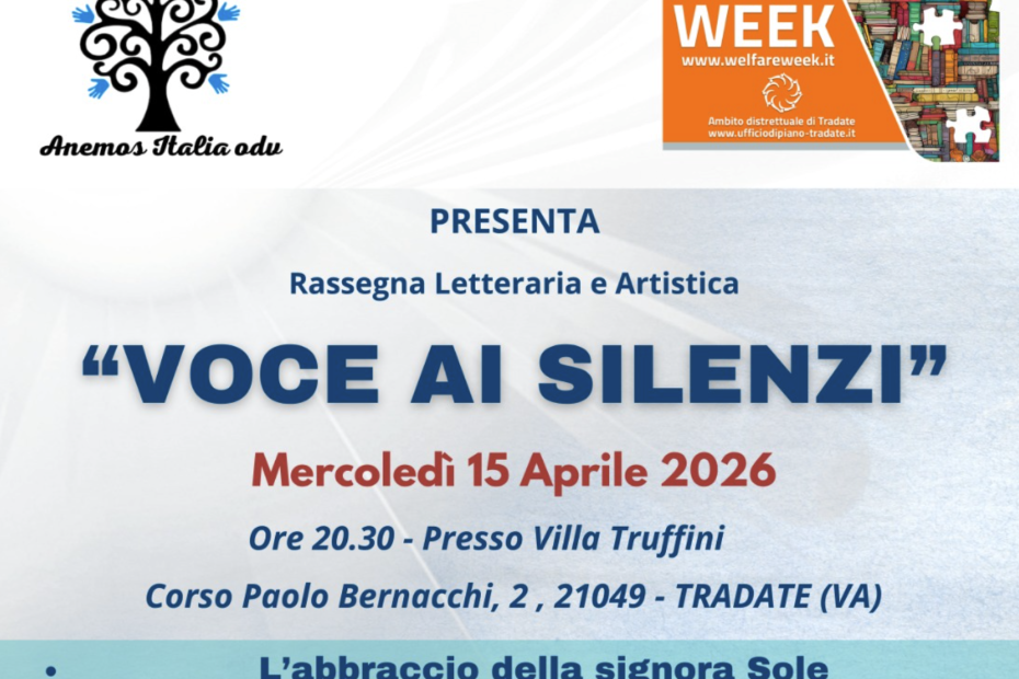 MERCOLEDI’ 15/04/2026 ore 20.30 Voce ai silenzi A cura di: Anemos Italia odv Villa Truffini – Tradate
