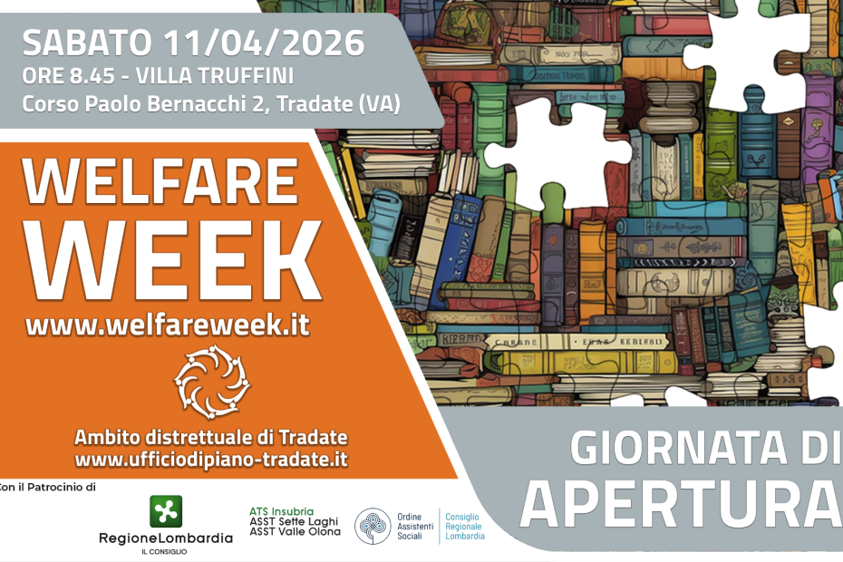 Martedì 20 gennaio 2026 Ore 10.00 Villa Truffini – Tradate L’Ambito Territoriale di Tradate presenta la conferenza stampa “Preview Welfare Week 2026”, dedicata ai progetti attivi sul territorio e al lavoro di integrazione sociale e socio-sanitaria realizzato insieme a istituzioni, servizi e… Leggi tutto »Preview Welfare Week 2026 – Costruire reti per il welfare di comunità